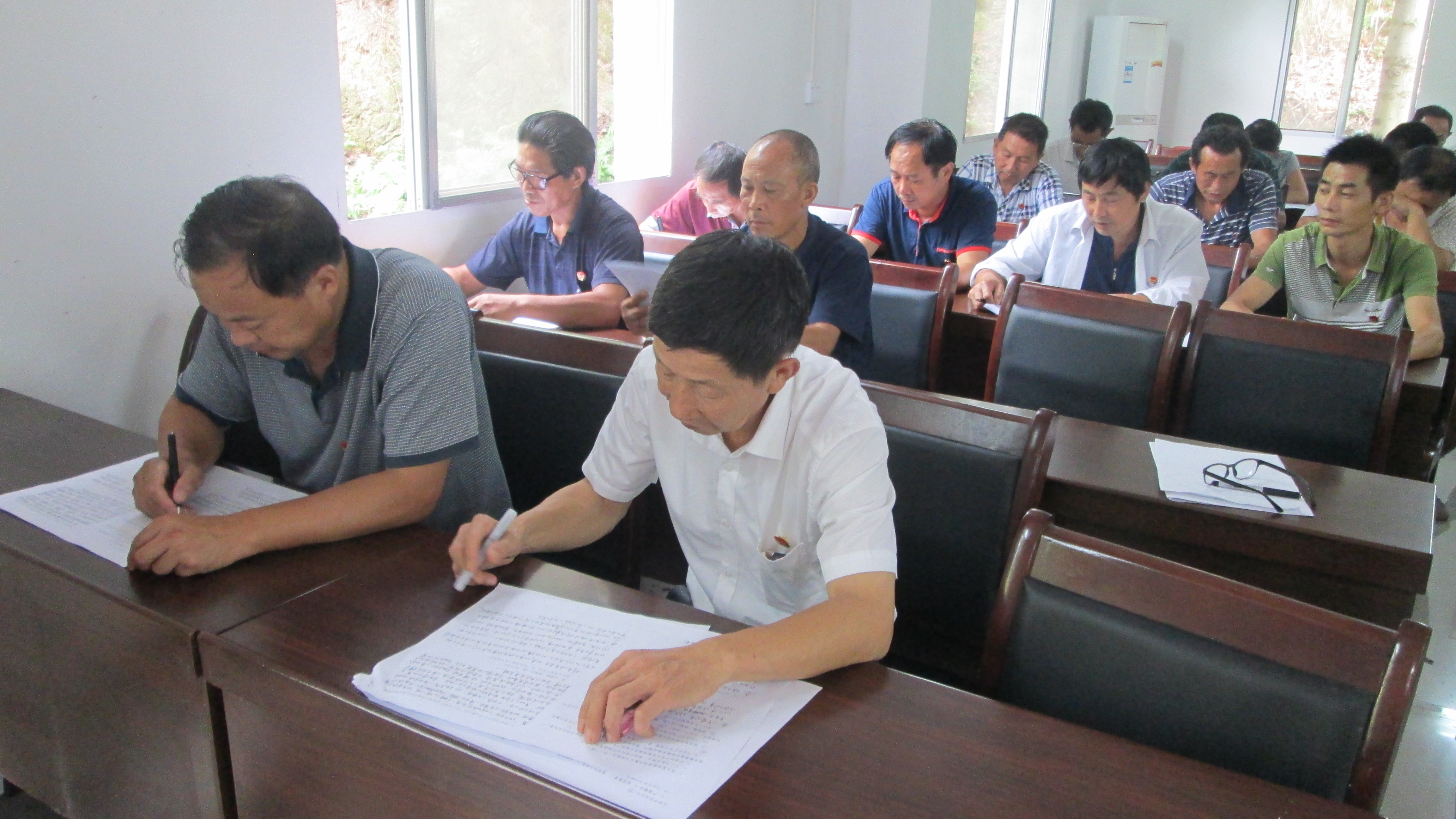 党员们在仔细审阅、认真地作答